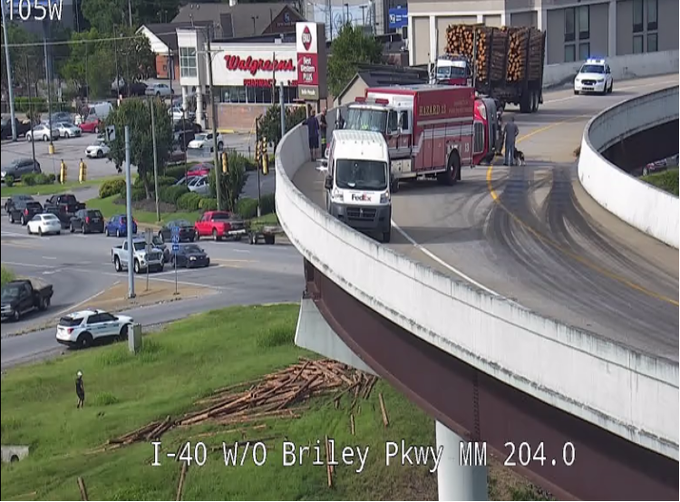 Overturned Truck Spills Logs Fuel On Briley Pkwy Ramp